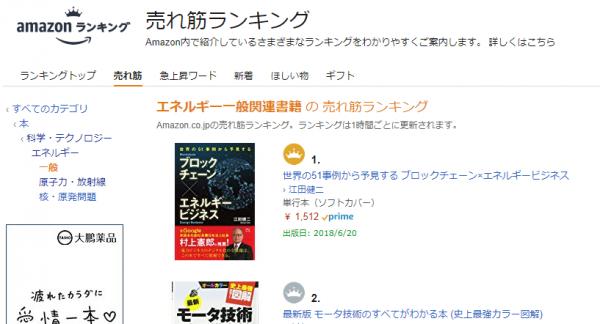 書籍「ブロックチェーン×エネルギービジネス」がAmazon売れ筋ランキング1位を記録(エネルギー部門)