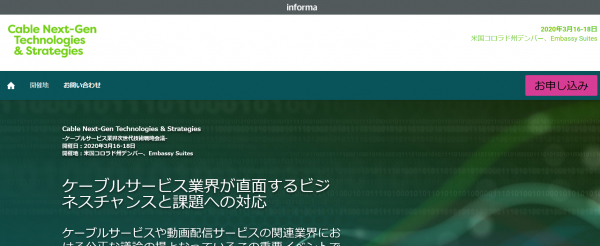 国際会議「ケーブルサービス業界次世代技術戦略会議」(Informa Telecoms & Media主催)の参加お申込み受付開始