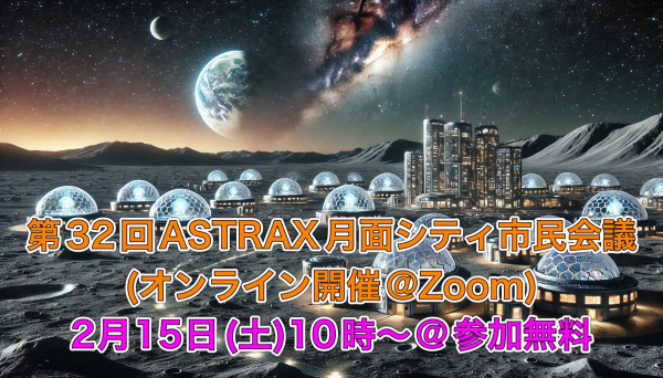 世界中の人々の夢を宇宙で実現させる民間宇宙サービスプラットフォームを提供する宇宙ベンチャー企業株式会社ASTRAX(アストラックス、以下 ASTRAX、本社:神奈川県鎌倉市、代表:代表取締役・民間宇宙飛行士 TAICHI(山崎大地))のグループメンバーが構成するASTRAX月面シティは、2025年2月15日に、ZOOMを使ったオンラインにて、第32回となるASTRAX月面シティ市民会議を開催しました。