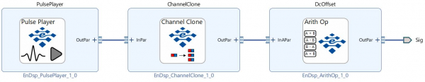 連続波処理向けにはFM復調器、パルス処理向けにはベースライン補正、パルス抽出など、各用途に合わせた専用ブロックを選択可能。