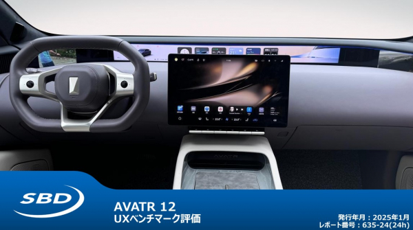 英国に本社を置き自動車技術に関する調査およびコンサルティングを手掛けるSBD Automotiveジャパン(名古屋市)では、欧州、米国、中国市場で提供されている最新の車載HMIソリューションのユーザーエクスペリエンス(UX)を評価対象とした「UXベンチマーク評価レポート」をシリーズで発行しています。2025年1月10日に発行した最新レポートではAvatr 12のHMI UXを評価しています。