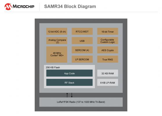 ほとんどのLoRaエンドデバイスは、長期間スリープにとどまり、時おり復帰して小さなデータパケットを送信します。SAM R34デバイスは超低消費電力SAM L21 Arm(R) Cortex(R)-M0+ベースMCUを内蔵しておりスリープ電流が790 nAと小さいため、アプリケーションの大幅な消費電力低減とバッテリ動作時間延長が可能です。コンパクトな6×6 mmのパッケージの高集積SAM R34/35ファミリは、小型の設計と何年ものバッテリ動作が要求される幅広い種類の長距離低消費電力IoTアプリケーションに理想的です。